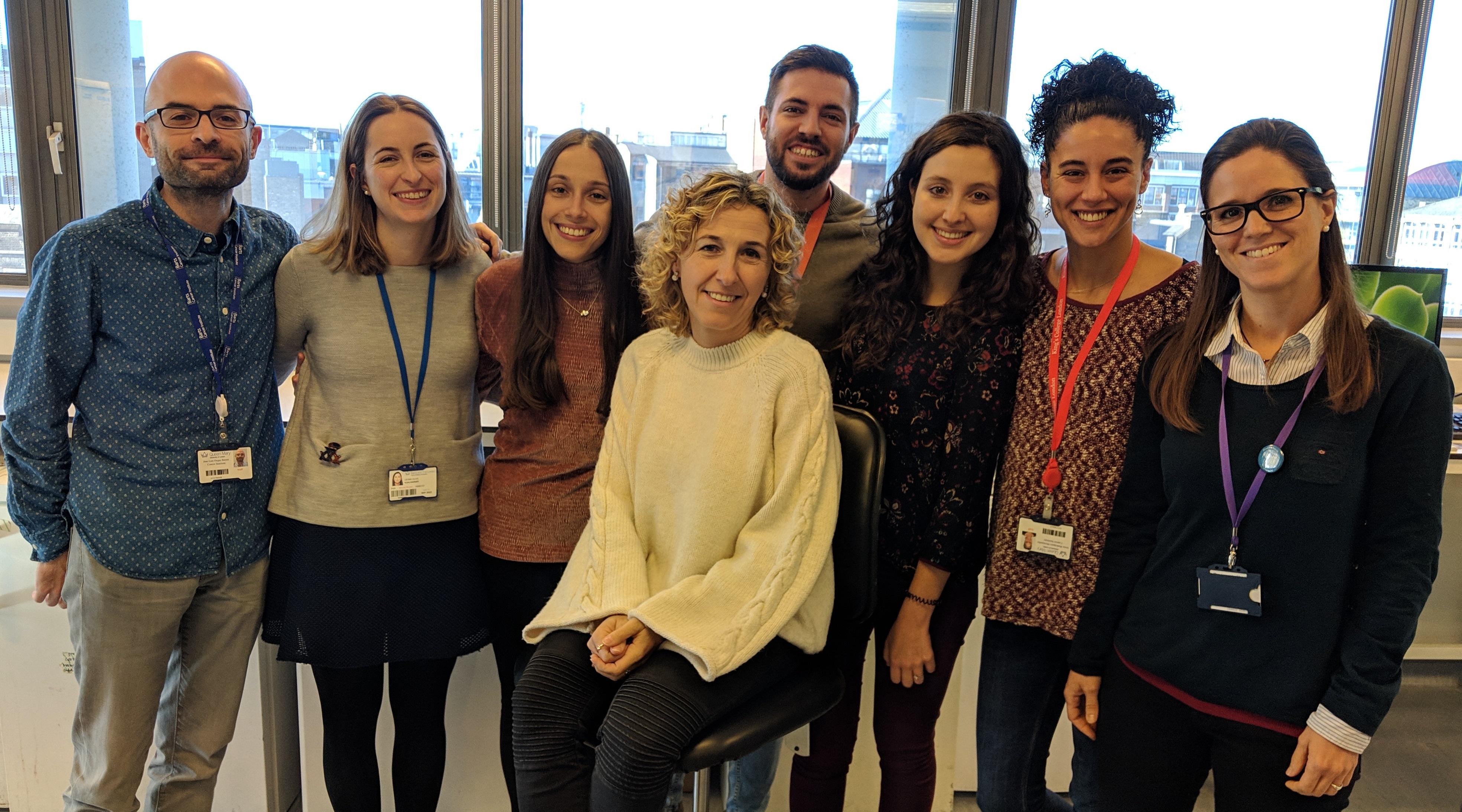 Prof Sanz-Moreno and her team. From left to right: Jose Luis Orgaz Bueno, Leonie Kohlhammer, Yaiza Jung, Prof Sanz-Moreno, Oscar Maiques, Anna Perdrix, Irene Rodriguez Hernandez and Eva Crosas Molist (missing from picture: Laura Stennett).